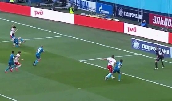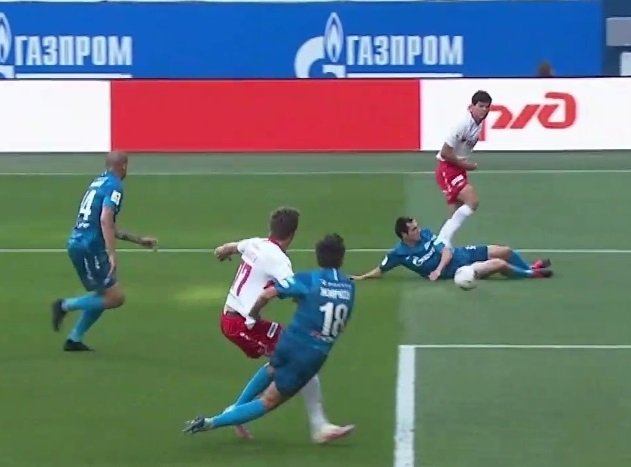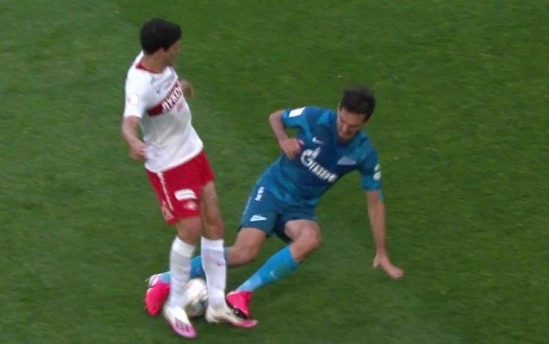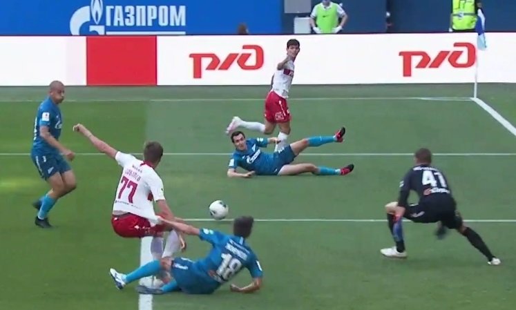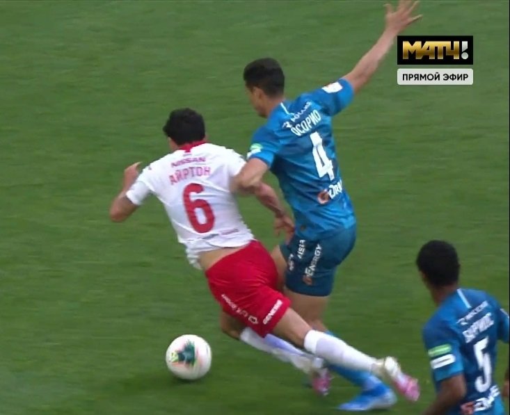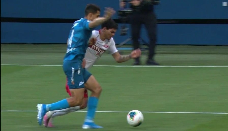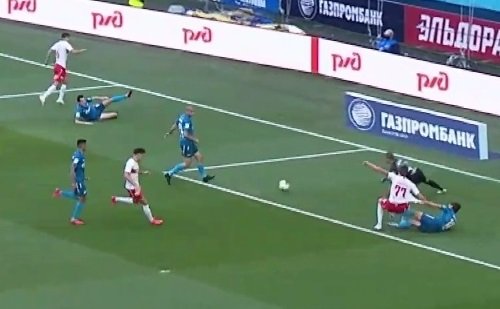 Ближе к концу встречи в штрафной "Зенита" упал Айртон. Встречавший его Осорио выставлял руку и отпихивал ей соперника.