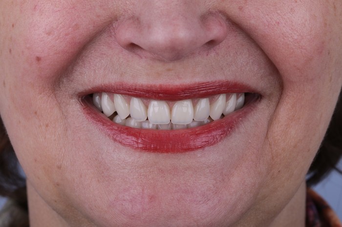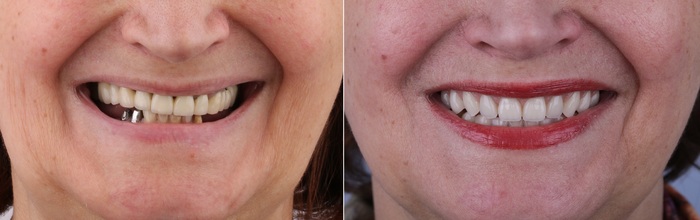 Пациентка с протезом, установленным сразу после удаления зубов и имплантатов.