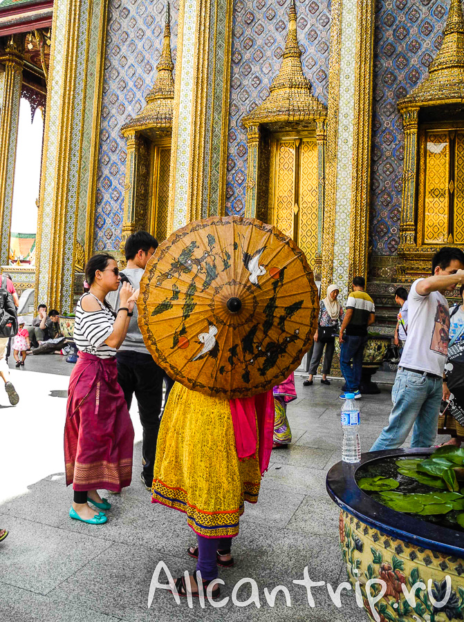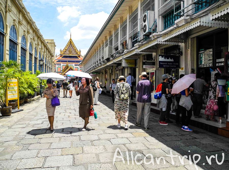 Если Вы вдруг неподобающе одеты, то по пути во Дворец не один таец скажет, что Вас просто не пустят на территорию храмов. На самом деле, это, конечно, не так. При входе на территорию дворца можно арендовать специальную одежду, что очень удобно. Аренда одежды — бесплатная, но нужно отдать депозит в размере 200 бат за каждую вещь. Эти деньги возвращают после того, как Вы сдаете вещи обратно.