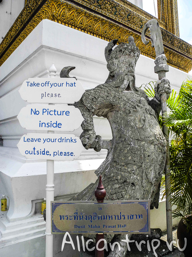 В Королевском дворце, как и во многих буддийских храмах, есть определенные дресс-код — должны быть закрыты плечи и колени, нельзя надевать короткие юбки, майки и т.д.