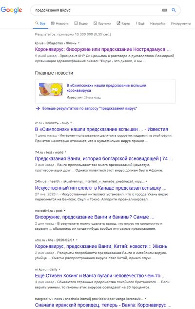 Кто нибудь знает, были ли предсказания, что мол грядет эпидемия вируса. Сколько не искал, никто из хваленых предсказателей, экстрасенсов даже не заикнулся о мировой эпидемии.