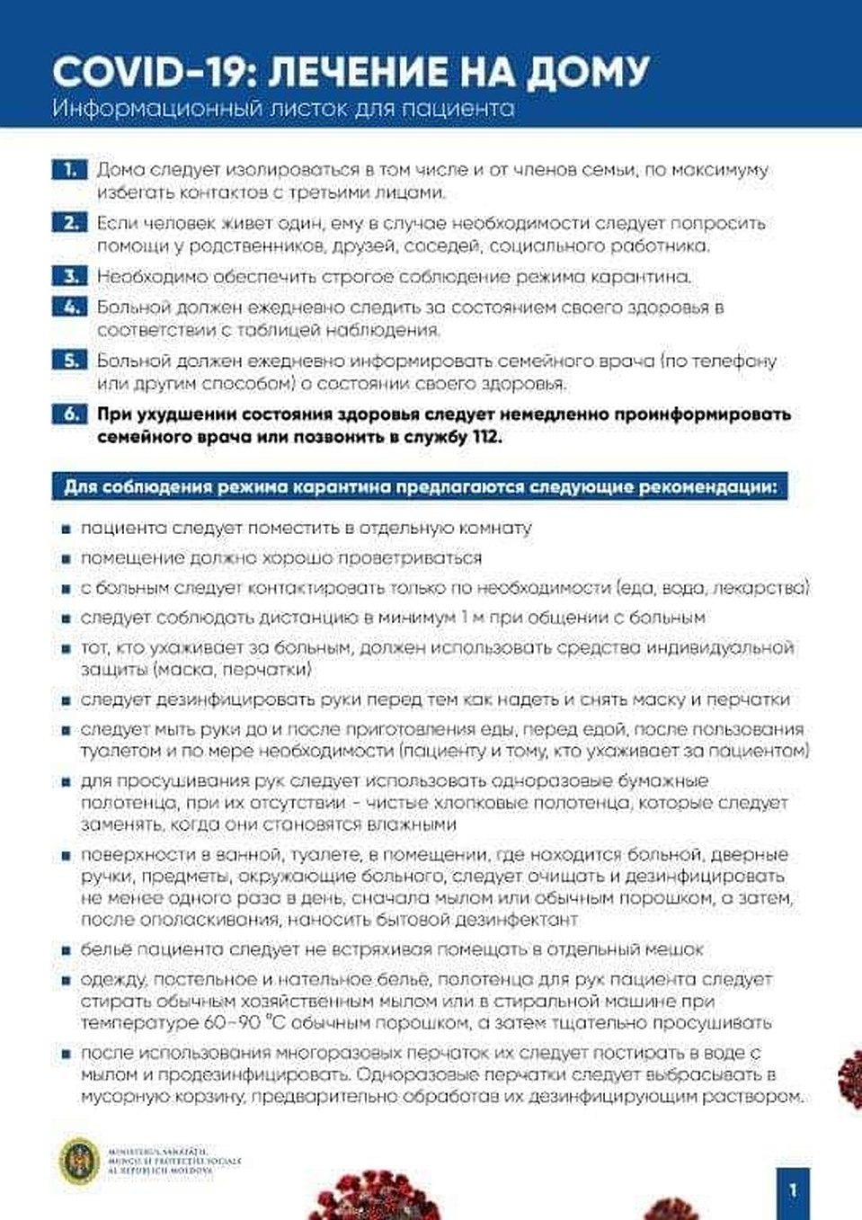 Рекомендации по домашнему лечению легких форм коронавируса. Фото: Минздрав Молдовы