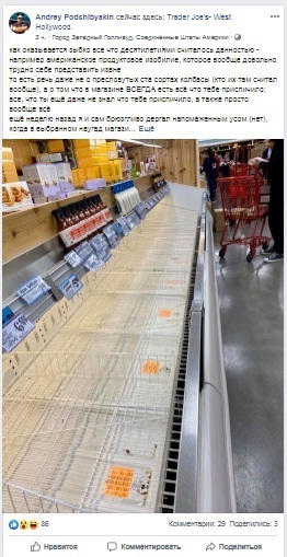 И пчочему куча однотипных постов с пустыми полками в США вывалились в ближе к 10 вечера (и это в западных штатах, в восточных уже ночь)?