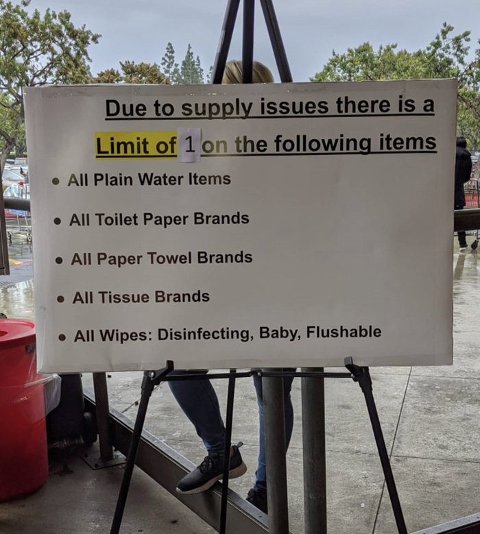 Знакомый из Энсино сегодня сходил в TJ's. Сказал, там всё раскуплено. Я сегодня ради интереса в обед забрёл в Ralph's в Old Pasadеna. Там так, как на картинках.