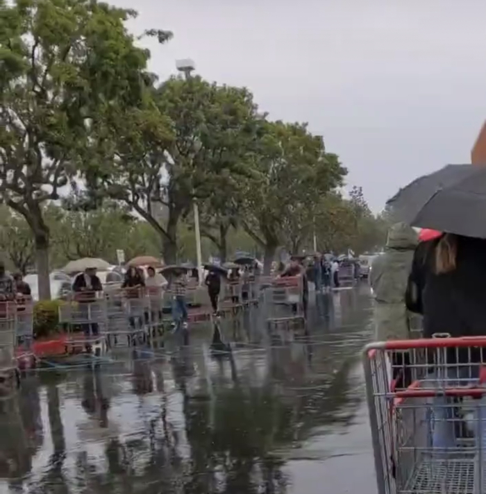 Причём люди стоят под дождём! Такое ощущение, что аппокалипсис уже близко. А местные блоггеры делают сториз о том как они закупаются в больших колличествах на случай если нельзя будет выходить на улицу.