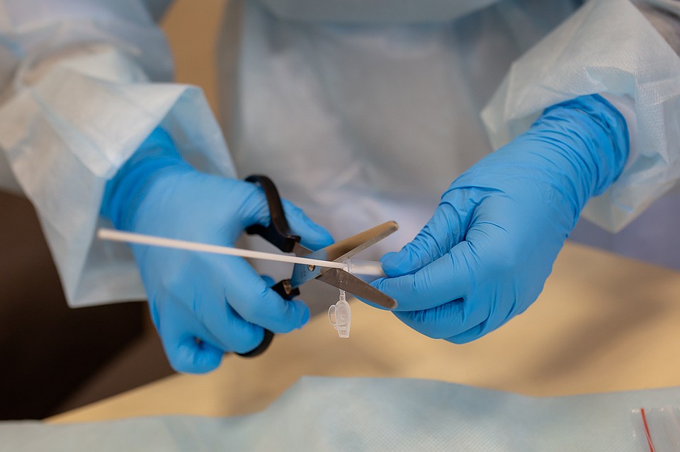 Проба из носа аккуратно упаковывается в колбочку. Фото: Валерий ЗВОНАРЕВ