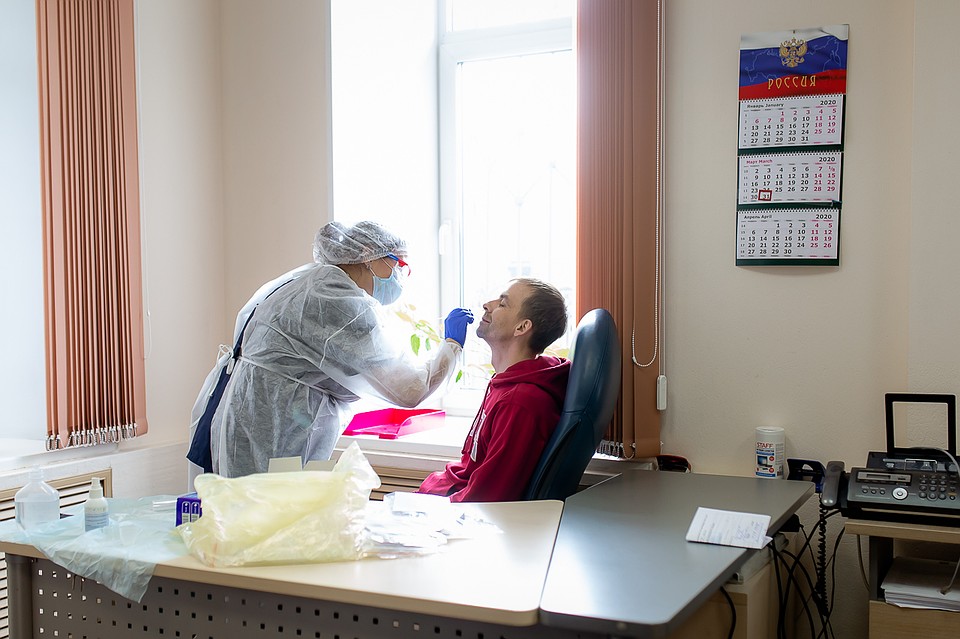 При высокой температуре и других симптомах коронавирусной инфекции врач осматривает заболевшего на дому. В домашних условиях тестирование не проводят, но если есть риск, что болезнь вызвана коронавирусом, пациента госпитализируют в инфекционную больницу, независимо от тяжести состояния. Здесь у него берут мазок из зева и отправляют в лабораторию Роспотребнадзора либо делают экспресс-тест.