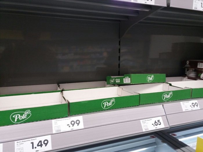 Из-за боязни введения будущих запретных красных зон, таких как в северной Италии, люди начали покупать продукты в пострадавшем Хайнсберге. В некоторых супермаркетах свежих продуктов становится все меньше.