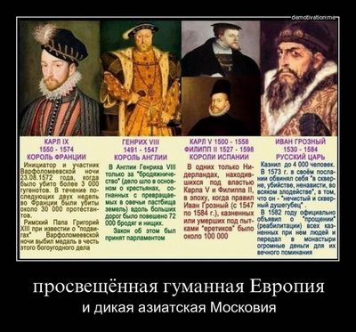 И это ж надо было найти такую помойку (речь идет о писанине Курбского) и почти целиком её перекатать в историю Государства Российского, представив Курбского, как героя, а всю его мазню, как "неоспоримые факты"?! Ведь именно из писанины Курбского главным преимущественно состоит IX том Истории Государства Российского Крамазина. Почему наша интеллигенция так ненавидит свою Родину?! Вот так и получается, по слову Святителя Тихона Задонского: "один клевету сказал, другой – повторил, и так весь народ слушает и повреждается" Курбский – накропал, Карамзин – перекатал, у Карамзина стали передирать (с обязательными доработками и новыми приукрасами) другие "ревнители исторической истины". И пошло поехало…