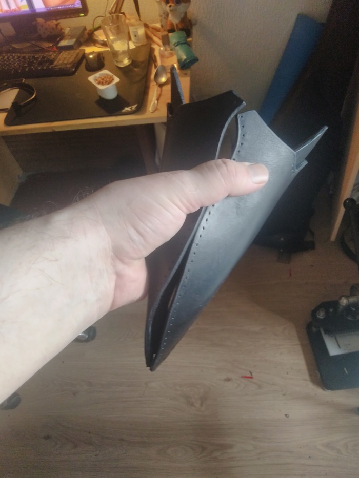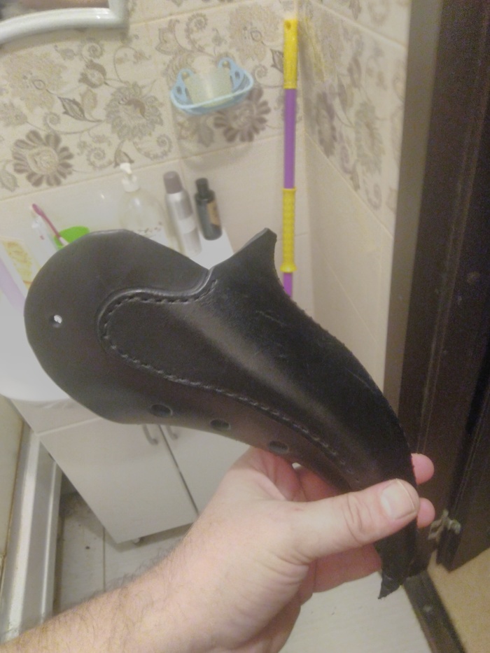 Сшил полумаску, но, думаю, что это - просто полумаска, надыть добавить функционала. Сделал амбюшур из замши и проклеил отверстия спандексом.