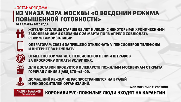Какие меры ответственности предполагаются за нарушение предписанного режима? Куда можно уехать из мегаполисов в период опасной эпидемии коронавируса, предсказанной, как оказалось еще великой Вангой? Неожиданные решения и лайфхаки для родителей с детьми и людей старшего поколения – в "Прямом эфире".