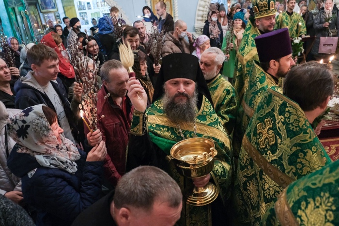 Кафедральный собор в Красноярске. Освящение первых верб.