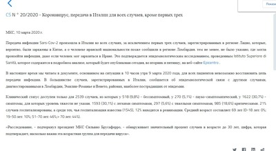 CS N ° 20/2020 - Коронавирус, передача в Италии для всех случаев, кроме первых трех