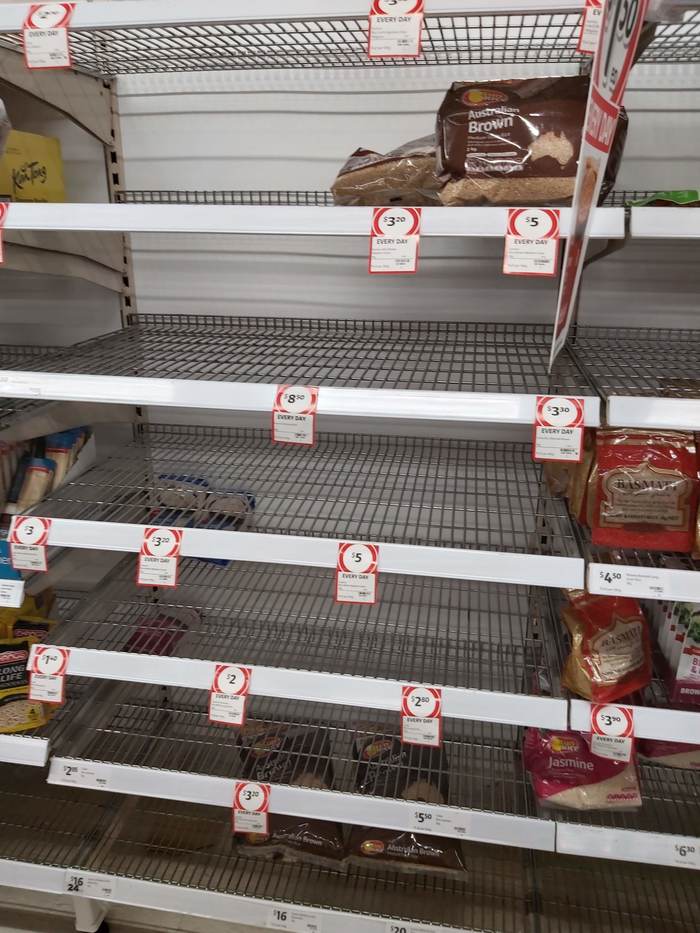 В связи с угрозой Короновируса в Австралии раскупили ряд продуктов, среди которых: рис, крупы, мука и макароны.