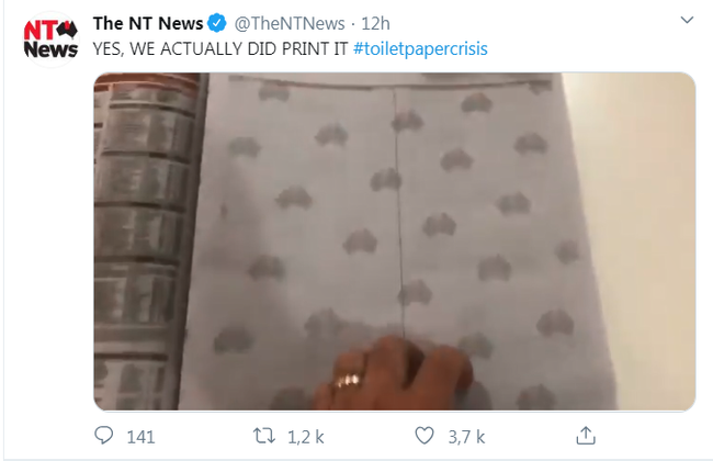 В редакции австралийской газеты Northern Territory News решили помочь нуждающимся австралийцам и выпустили номер с дополнительными восемью страницами. Листы размечены специальными линиями, по которым их удобно отрывать.