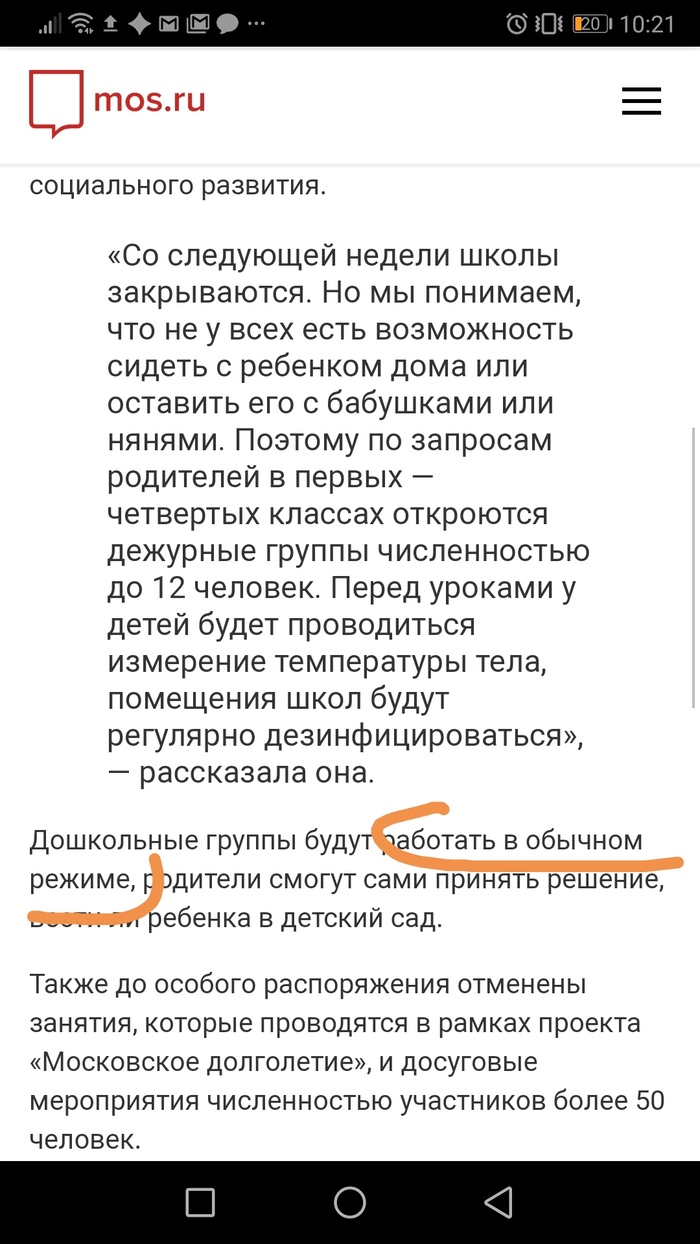 Для меня просто дичь, что в регионах, где один больной, меры принимают, а у нас в Москве "свободное посещение".