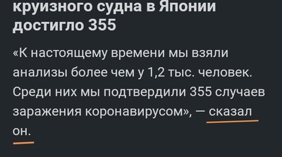 17 февраля стало известно о первой россиянке, заразившейся смертельным вирусом на борту лайнера Diamond Princess. Посольство России в Японии сообщило, что женщину госпитализируют и окажут всю необходимую помощь. Однако никаких подробностей о ее состоянии и личности не раскрывалось.