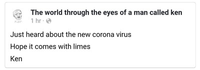 Да, а мне не смешно. Очень много товаров в Украине из Китая да и в России тоже, да что там во всем мире, и не только из непродовольственных (на них как-то пох их везде полно), а продовольственных - это и овощи и фрукты и особенно каши, гречневая, рисовая, перловая, чичивичная не знаю может еще какие, их все делает Китай на экспорт, едут они вполне в благоприятной, среде в мешках. Куча товаров приходит к нам из Китая в виде замороженной продукции и консерв, высушенные товары продуктовые, скажите холод убивает вирусы и бактерии, ну да убивает, но находятся и выжившие падлы.