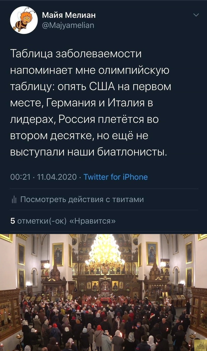 Январь: угроза третьей мировой войны Февраль-март: коронавирус и Всемирная паника Апрель: pic.twitter.com/IF7K8TKVKu