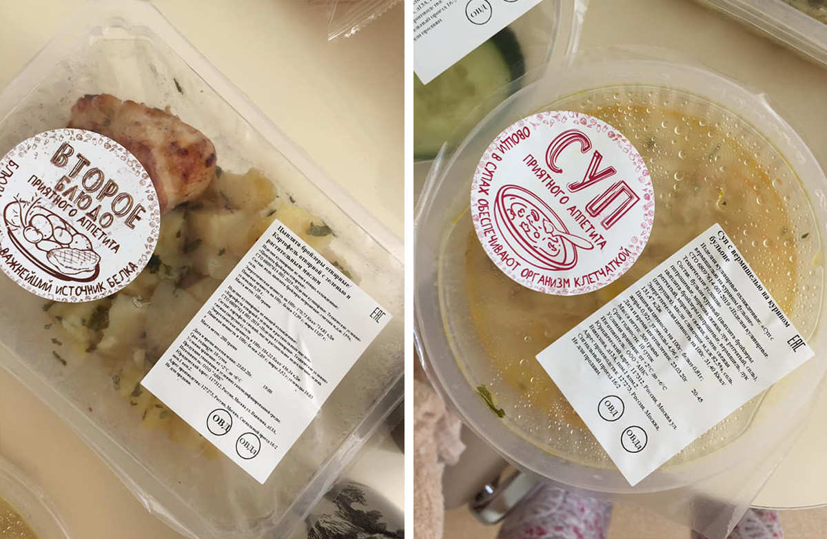 Я не ем мясо и молочные продукты, но тут приносят молочко – просто оставляю неподходящую для меня еду на столе. Мне сказали, что мои предпочтения в еде учитывать не будут, так как все уже рассчитано. К счастью, близкие люди передали фрукты, поэтому стало легче. Но овощные блюда были очень вкусными. Все подается в вакуумных упаковках, приборы и чашки одноразовые.