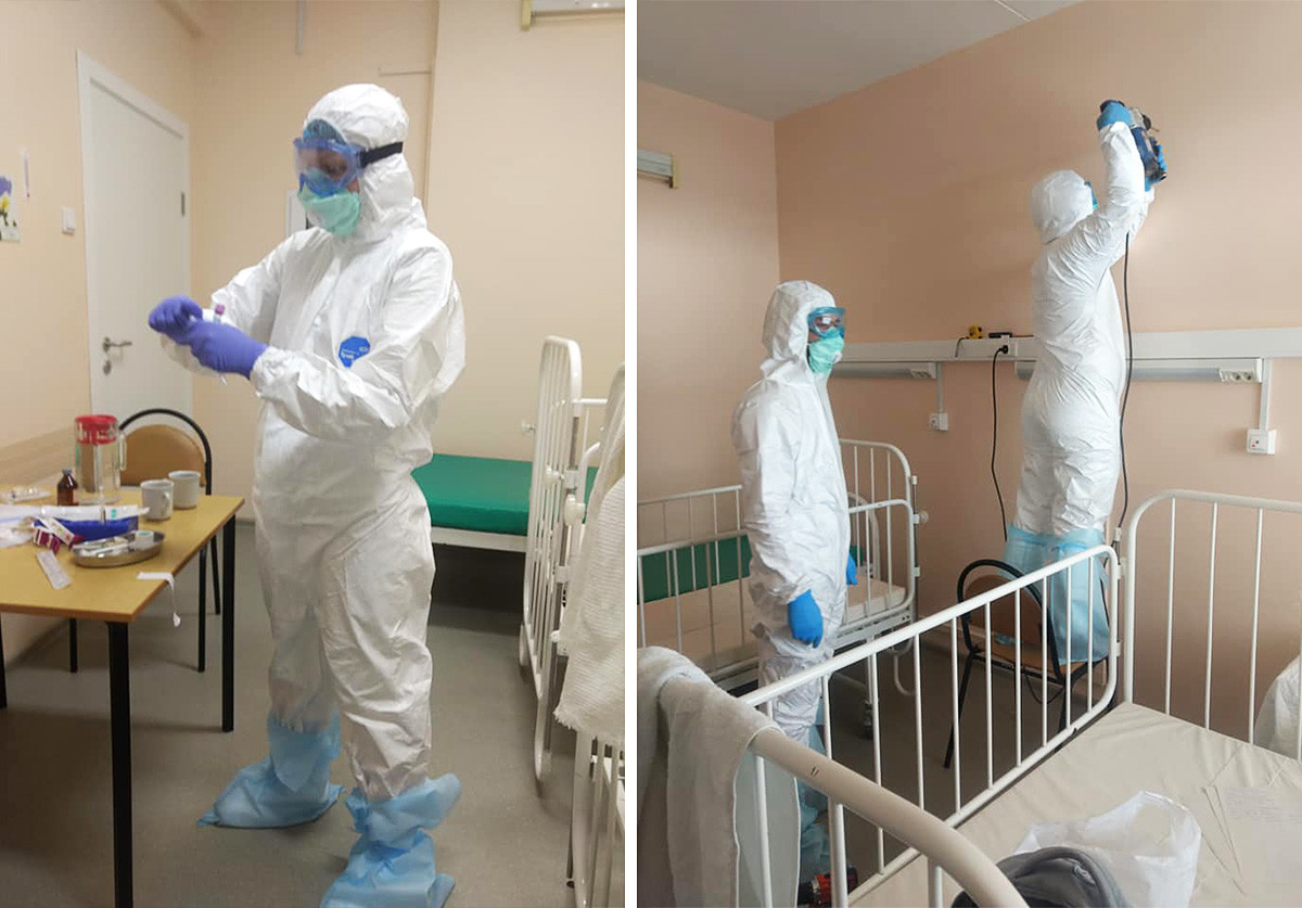 "Вообще все, кто ко мне заходит, в спецзащите — и нянечки, которые моют полы, и медсестры, раздающие градусники, и врачи. Без костюма я вообще здесь никого не видел. Поначалу смотрится жутковато: будто попал в фильм об эпидемии. Потом привыкаешь", — говорит молодой человек.