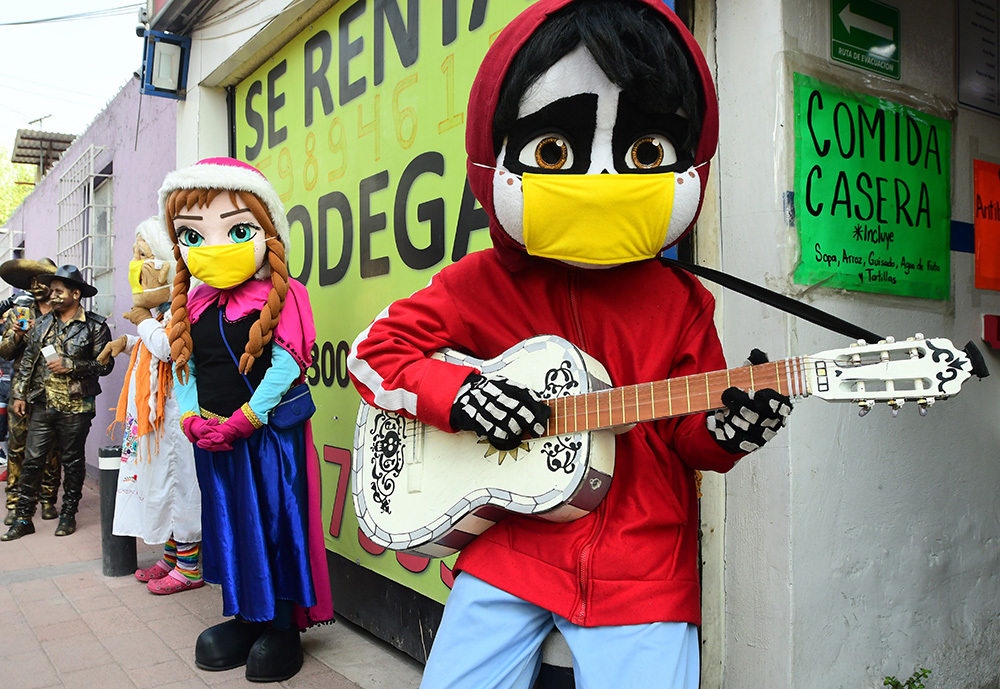 Уличные артисты в очереди за продовольственной помощью в Мехико. Фото: EPA-EFE