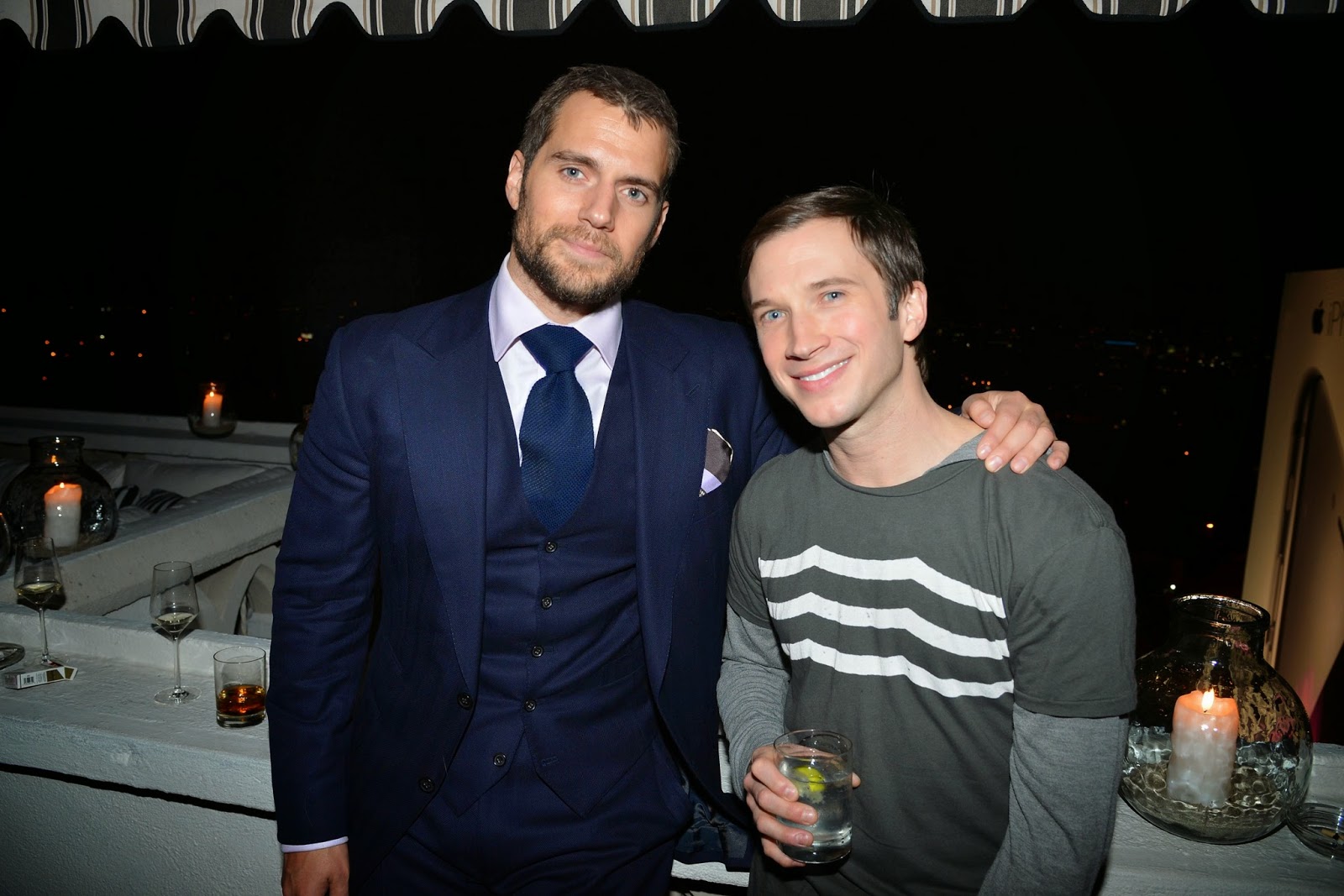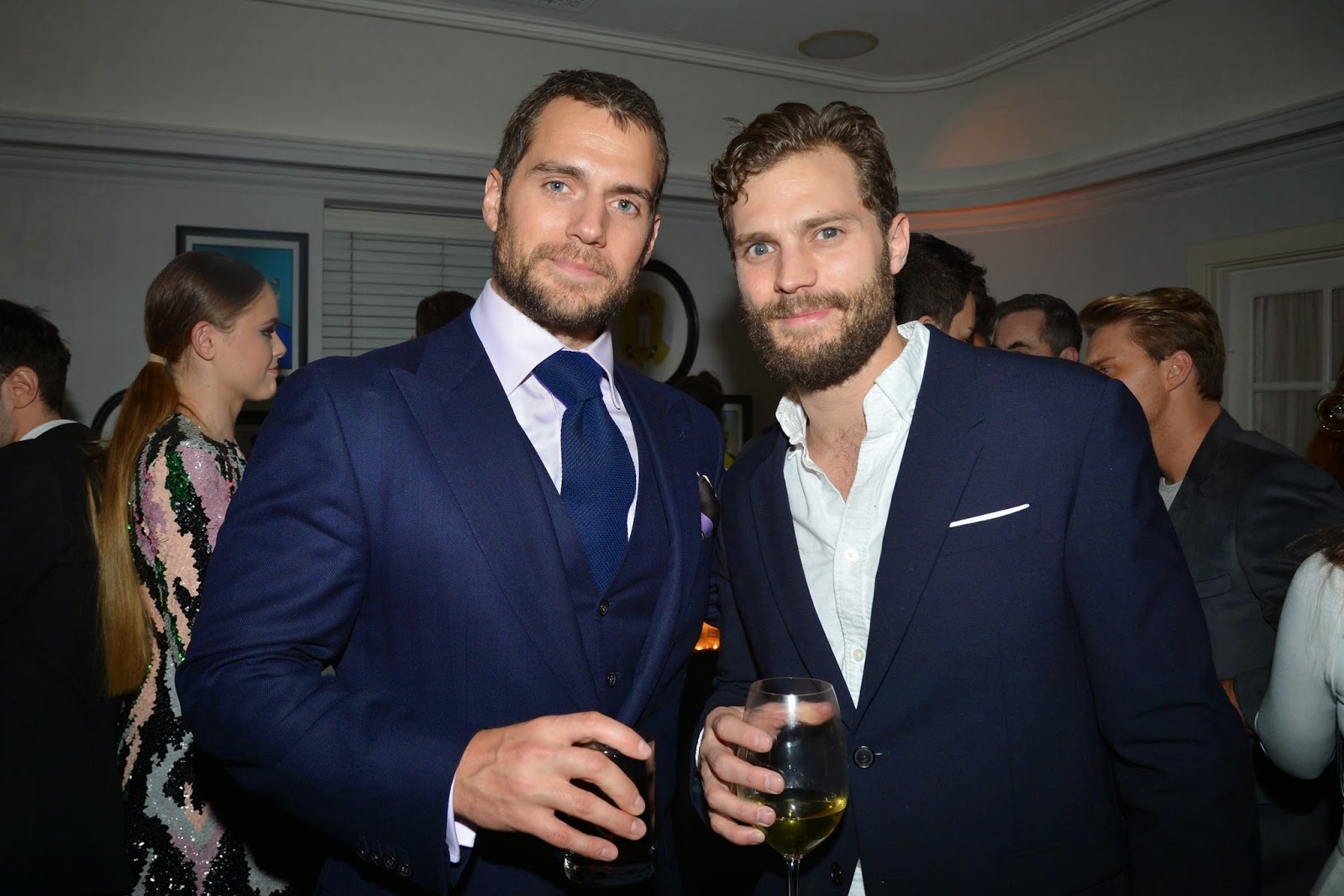 Henry could just be hitting the party circuit, with a few more bashes he may show up for. These last few weeks he's been busy training for his role in Stratton. Last night he was seen mingling with Amy (take *that* Batman!), Jamie Dornan, Miles Teller, Chris Evans and Gillian Anderson.