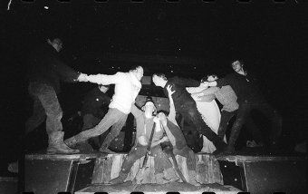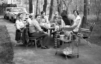 Между прочим, мой друг из Петербурга — он тоже много снимал нас с Володей, Петя Солдатенков — прислал мне снимок, сделанный в начале июня 80-го года. Мы с Володей в театре, и сразу видно, что все, что о нас рассказывают эти гады — неправда. Мы вместе.
