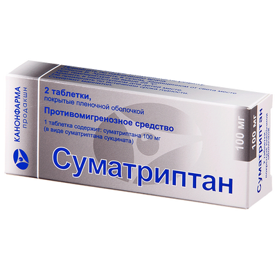 Здесь суматриптан содержится в небольшой дозировке 50 мг, которой большинству пользователей достаточно для снятия головной боли. Но если она носит интенсивный и продолжительный характер, можно выпить сразу две таблетки. Действие наступит примерно через 15-20 минут. Несмотря на невысокую дозировку, у средства есть немало противопоказаний и побочных действий, поэтому перед тем как принять первую таблетку, нужно обязательно проконсультироваться со специалистом.
