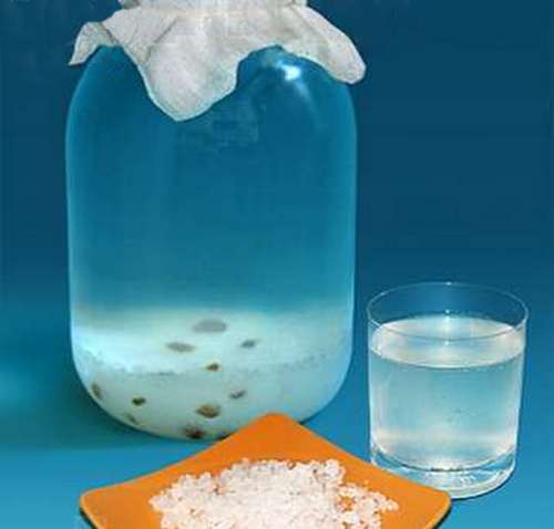 1. настой морского индийского риса — берут на литр остуженной прокипяченной воды 2ст.л. морского риса, 2ст.л. сахара, который необходимо развести кипяченой водой до полного растворения. Дело в том, что если крупинки попадут на индийский рис он заболеет. Добавляют 5 изюминок. Созреет через три дня, все зависит от температуры. Состав сцеживают, удаляют изюм. Морской рис промывают кипяченой водой и вновь заливают.