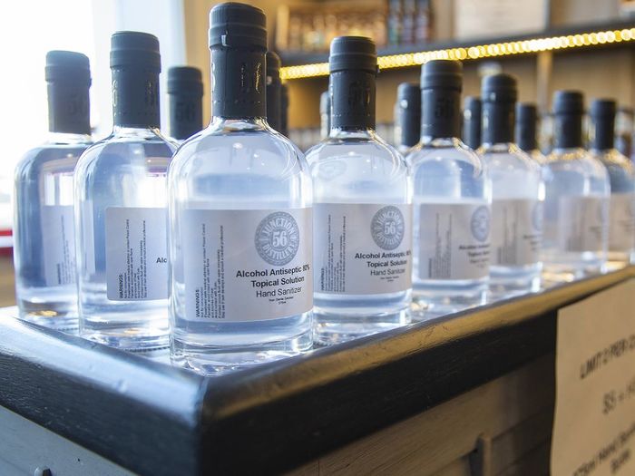 Компании по производству алкоголя начали выпуск санитайзера для рук в фирменных бутылках для своей основной продукции. Основной ингредиент — конечно же этиловый спирт.