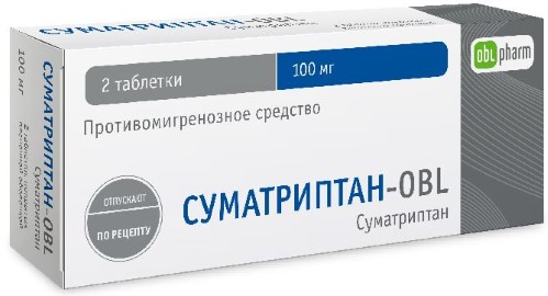 Таблетки от мигрени 2 шт в упаковке суматриптан