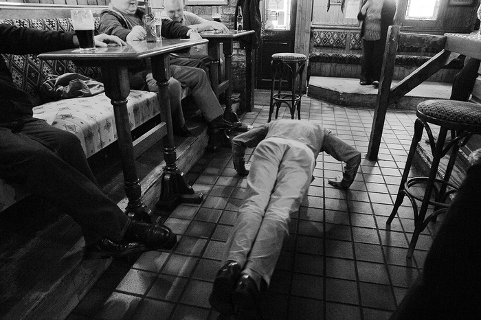 В новом заведении были уже гораздо более подвыпившие мужики с вспотевшими подмышками и танцевавшие с швабрами, за неименем дэнс партнерш.