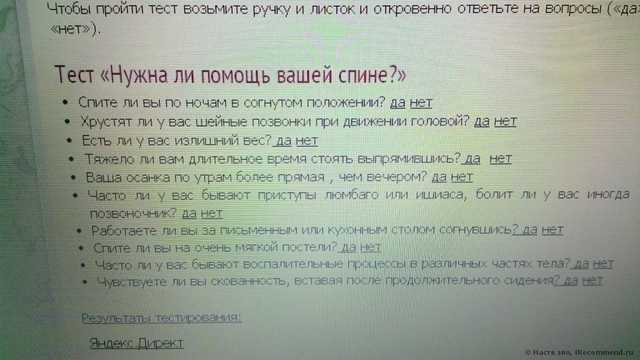 В общем, на работе я страдала от болей в спине. Но когда у меня выходные дни, то она не болит. Ну это понятно, там я двигаюсь больше.
