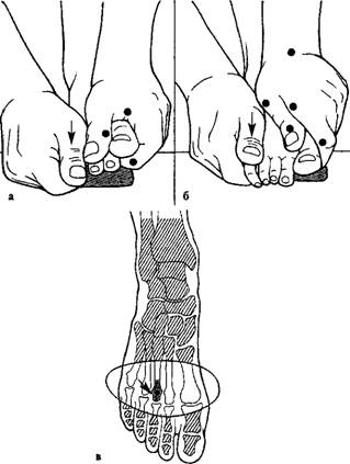 В плюснефаланговых суставах стопы мобилизация осуществляется как в направлениях, указанных выше, так и в направлении вращения.