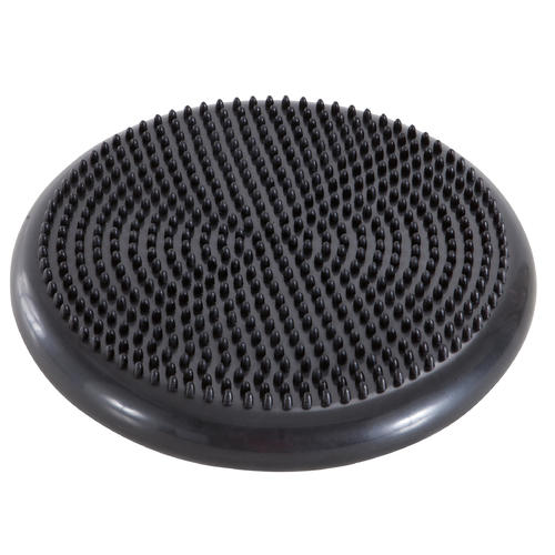 К инвентарю для занятий добавляется балансировочная подушка. Она представляет собой резиновый диск, частично заполненный воздухом.