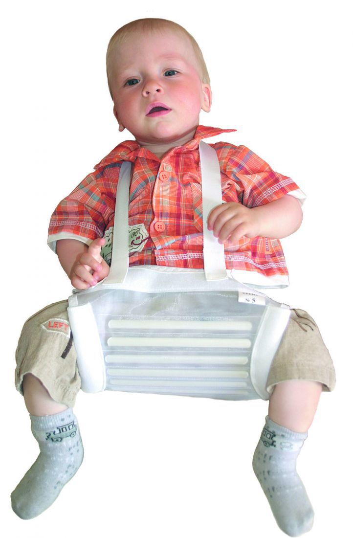 Такие конструкции применяются для исправления дисплазии тазового сочленения. Болезнь чаще диагностируется у новорожденных, характеризуется неправильным отведением ноги в суставе (по сути, это вывих). Приспособление представляет собой пластиковое изделие, которое одевается на ребенка при разведенных в коленях ножках, крепится на плечах и голенях. Устройства бывают жесткие, регулируемые и полужесткие. Выбирает модель детский ортопед, он же устанавливает срок ношения ребенком ортеза.