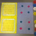 -Нарисуй предмет ногой. Дети вытаскивали из волшебного сундучка листочки с нарисованным заданием (так как читать дети не умеют, задания были в виде рисунков). Кому-то надо было нарисовать дом, кому-то флаг, кому-то облако, а кому-то человечка.