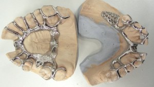 - Моделирование зубного ряда. Создаются модели из воска и гипса, а также отливается база с каркасом для коронок.
