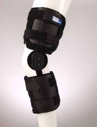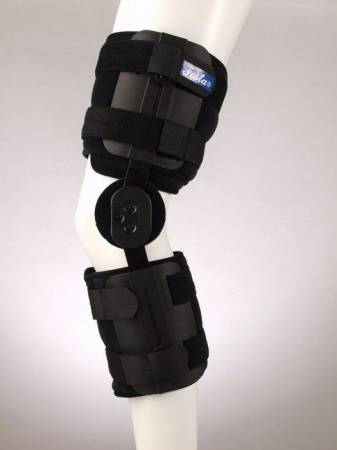 Ортез коленного сустава, дозирующий объем движений, выполнен из комбинированных материалов. Обеспечивает фиксацию и умеренную стабилизацию коленного сустава и надколенника, стабилизацию коленного сустава в вертикальной, фронтальной и сагиттальной плоскостях. Оказывает умеренную компрессию, микромассажное и тепловое воздействие. С помощью дозатора (угломера) обеспечивает дозированный объем движений в суставе (0, 15, 30, 60, 90 градусов) при сгибательных или разгибательных контрактурах. Также возможно использование как транспортной шины и послеоперационного тутора.