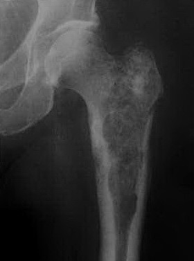 Пациент 64 лет с прогрессирующим болевым синдромом в левом бедре.