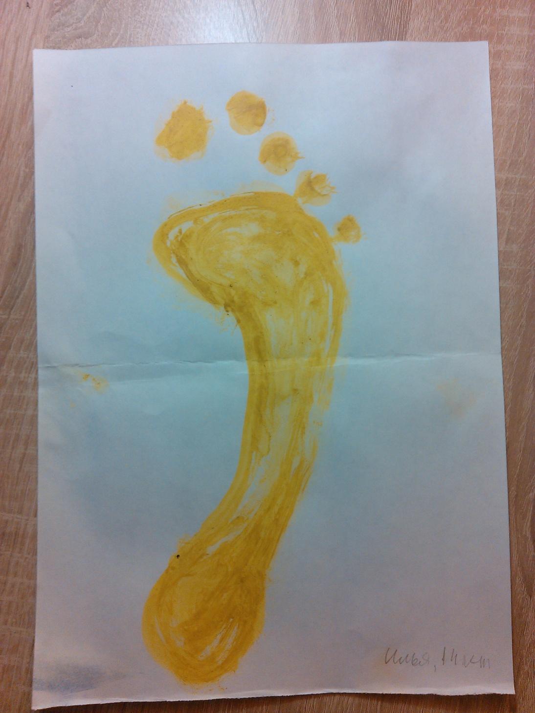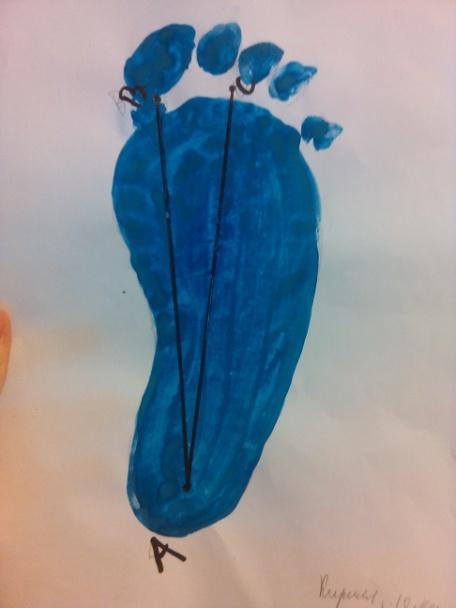 3. Наступаем на бумагу и получаем отпечаток стопы на чистом листе бумаги