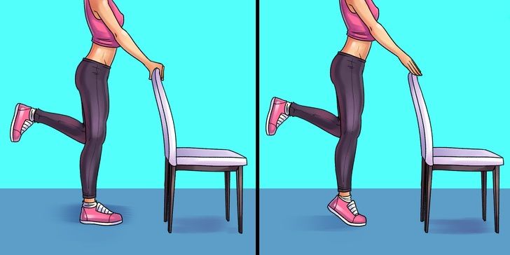 Если вам трудно держать равновесие, опирайтесь на спинку стула, стену или низкую перекладину.