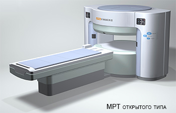 Есть ли выход для перечисленных категорий исследуемых? Да. Томографы меньшей мощности - низко- и среднепольные - выпускаются как аппараты открытого типа. Что это значит? В таком томографе пациент лежит на столе, над ним находится еще одна часть установки. По бокам, а также со стороны головы и стоп - свободное пространство.