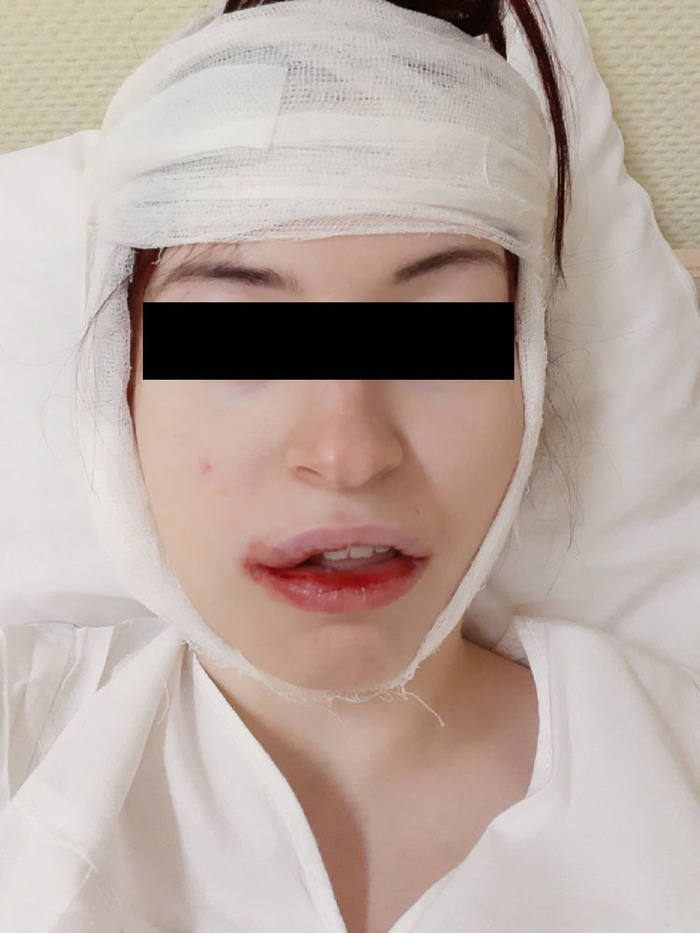 Утром 31 декабря меня благополучно укатили в опер. зал где члх-хирург выпилил окошечко в челюсти, вымыл метапекс и все красивенько зашил. Проснулась я фем-версией Джокера. В силу молчаливости и белого одеяния получила у соседей по палате прозвище "Снегурочка" (Снегурочка из какого-то хоррора судя по всему). Фото прилагается (ОСТОРОЖНО МЯСО)