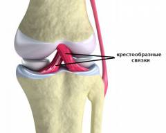 Внутрисуставные крестообразные связки. Они крест-накрест соединяют бедро с большеберцовой костью, укрепляя сустав. Подозрение на повреждение крестообразных связок также нередко становится показанием к артроскопии.![]()