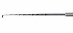Артроскопический зонд. Представляет собой изогнутый металлический стержень. При помощи него хирург может отодвинуть различные структуры, чтобы лучше осмотреть полость сустава. На артроскопическом зонде нанесены метки, благодаря которым можно оценить размеры образований.- Различные эндоскопические инструменты.