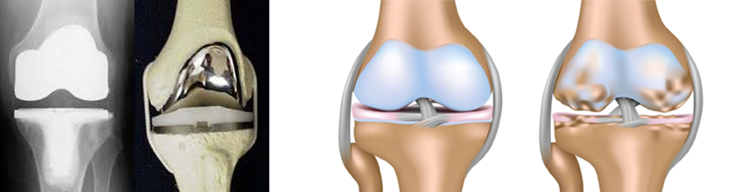 Коленный сустав заменяется имплантатами DePuy, Stryker, Waldemar Link, Covision. Учитывая состояние сустава, можно имплантировать несцепленные протезы, ротационно-сцепленные эндопротезы, петлевые системы и заднестабилизированные эндопротезы, в том числе с использованием переднего доступа. Длительность операции составляет около 1,5 часов.