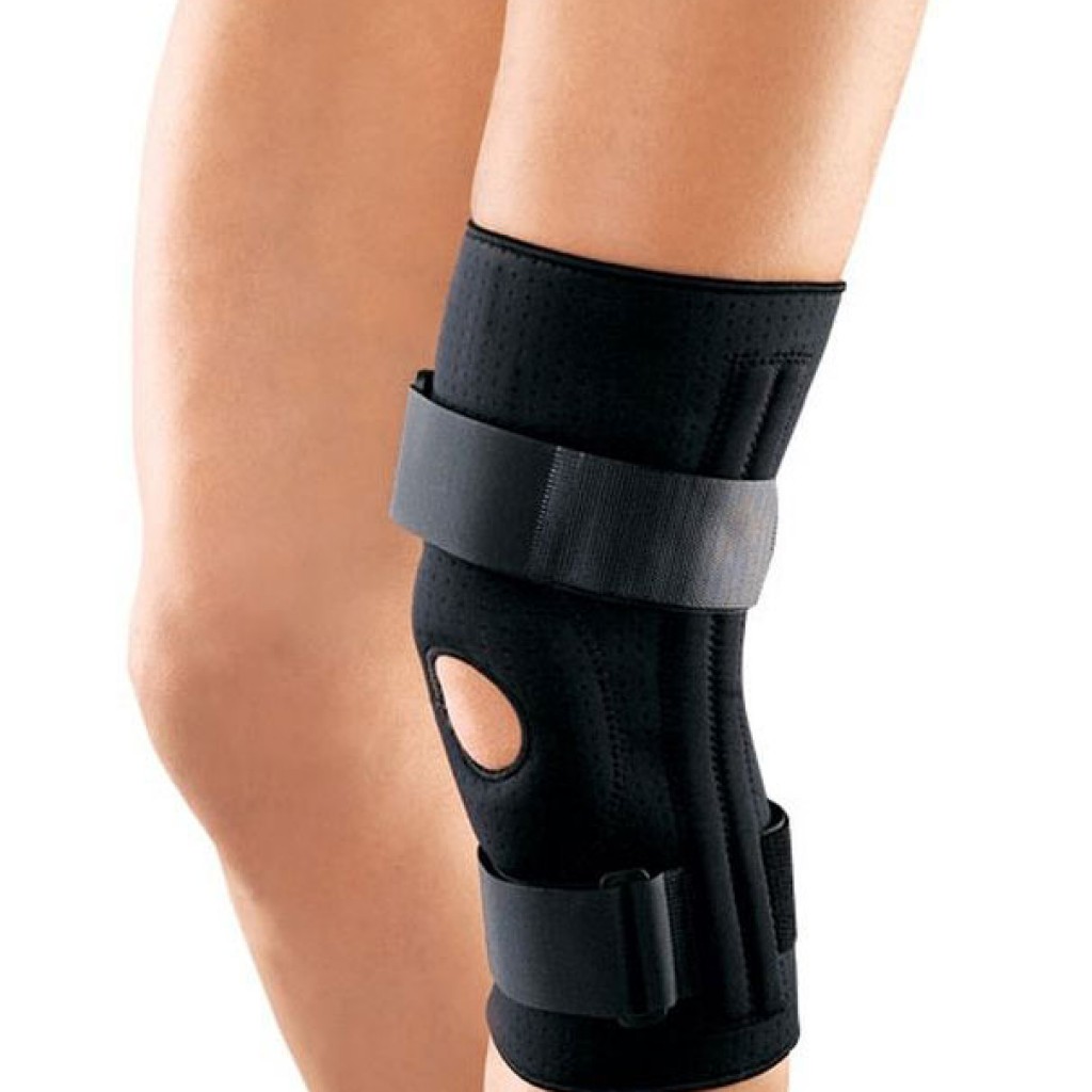 Шарнирный ортез на коленный сустав предназначен для длительного ношения. Он также является аналогом гипса, но позволяет двигаться суставу, таким образом поддерживая мышцы в тонусе. Ортез на коленный сустав с шарнирами показан при серьезных травмах, сильных болях, в послеоперационном периоде. Разъемная конструкция ортеза позволяет достигать лучших результатов в лечении при ограниченной подвижности сустава, отеках, при наличии избыточной массы тела.
