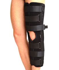 Ортез коленный жесткий позволяет максимально обездвижить сустав. Он является аналогом гипсовой повязки, но более удобен в использовании и не вызывает атрофию мышц. Жесткий ортез полностью обездвиживает сустав, его можно использовать при разрывах связок, менисков, переломе колена, в период реабилитации и после перенесенной операции.